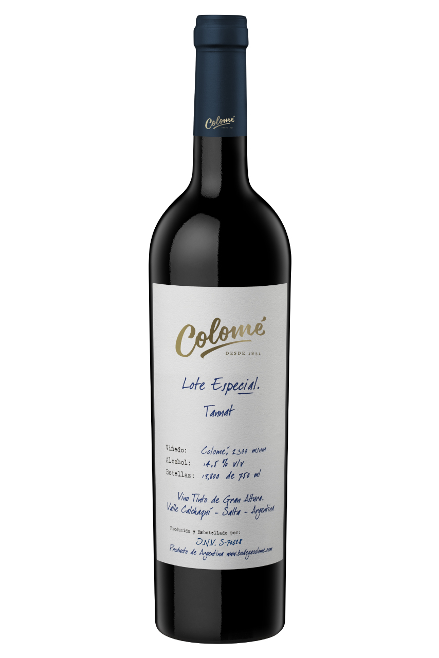 Vinificación: El Lote Especial Tannat proviene de un viñedo de Colomé a 2300 m de altura, una altura extrema para este tipo de varietal que es de ciclo largo. Colomé se destaca por su rico suelo arcilloso que permite mantener la frescura y madurar bien los taninos del Tannat. Desde el 2018, la cosecha se realiza bastante temprano, alrededor del 20 de marzo, un mes antes de lo que solía hacerse. Gracias a esto se gana mucha fineza y elegancia en el vino, se da una fruta más fresca y floral. Pero también, al cosechar más temprano, hay más presencia de taninos más verdes. Por esto mismo se tuvo que cambiar la vinificación, se hace una maceración en frío de 4 días que permite expresar la fruta sin extraer demasiados taninos y después una fermentación alcohólica con levadura indígena donde se hace muy poca extracción. El color y la concentración aromática se dan gracias a la altura. Después de una maceración de 20 días y la fermentación, va a pasar 12 meses en roble francés solo 10% nuevo.