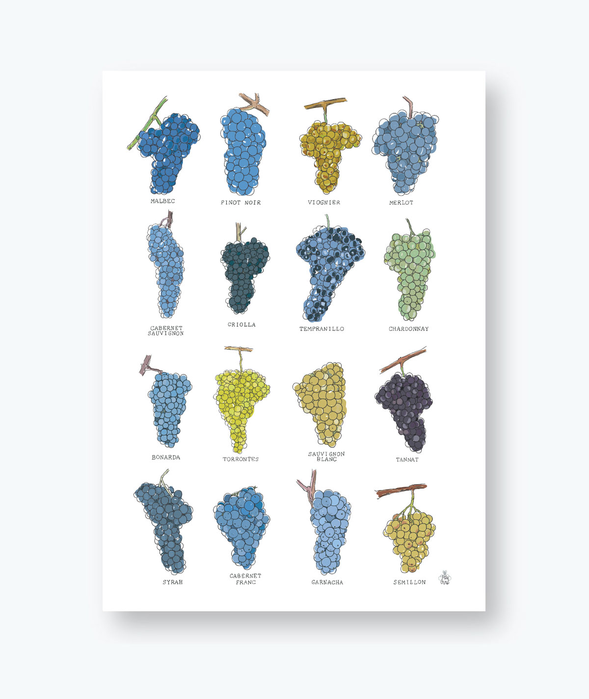 42 x 30 cm, papel de 170 g. De delicado trazo, 16 racimos de uvas blancas y tintas varían de coloridos y formas. Lámina que enamoró a nuestros seguidores desde un primer momento.