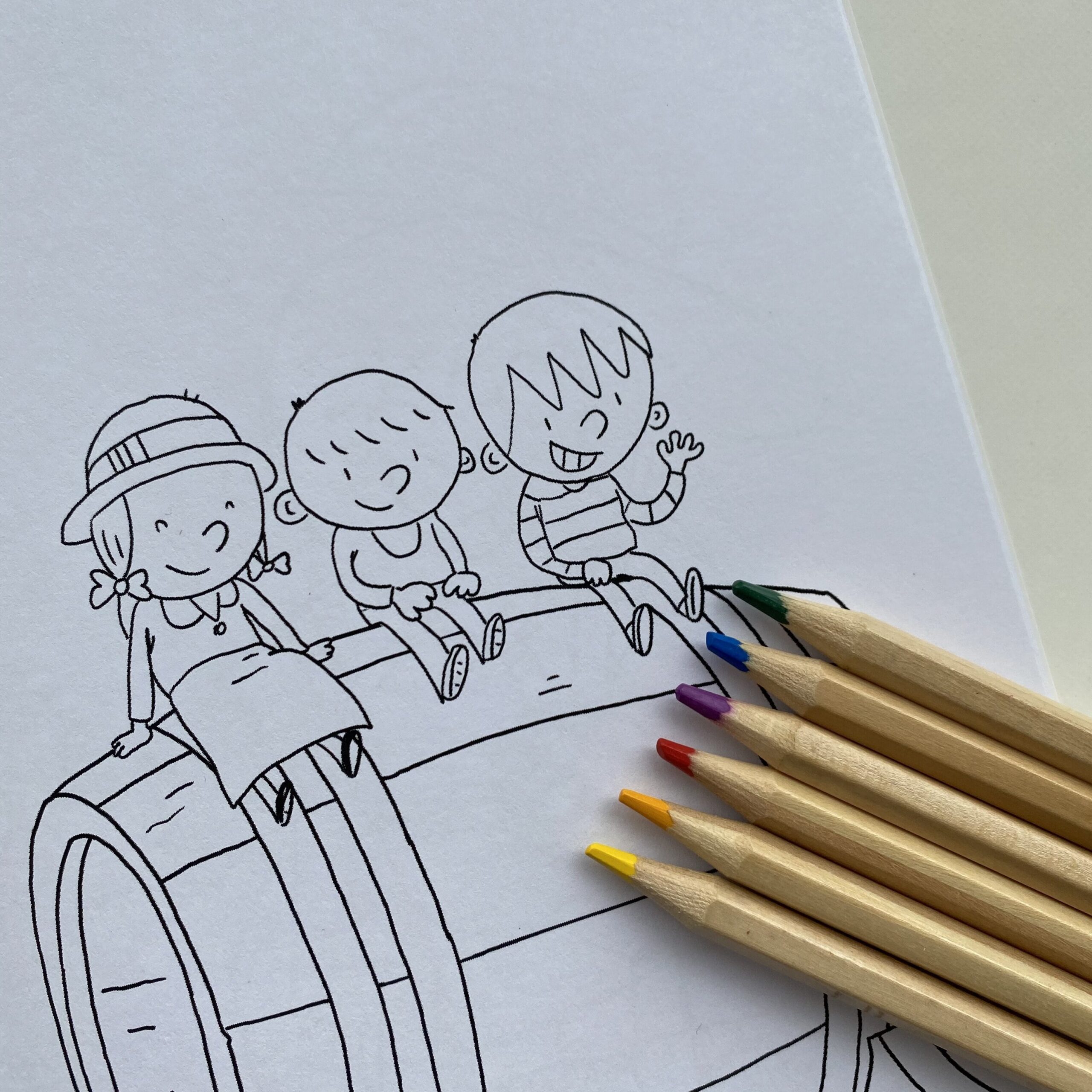 Formato cerrado 12 x 21 cm, tapa blanda coloreada, 16 hojas internas blanco y negro para colorear, incluye caja de 6 lápices de colores. Listo para colorear.